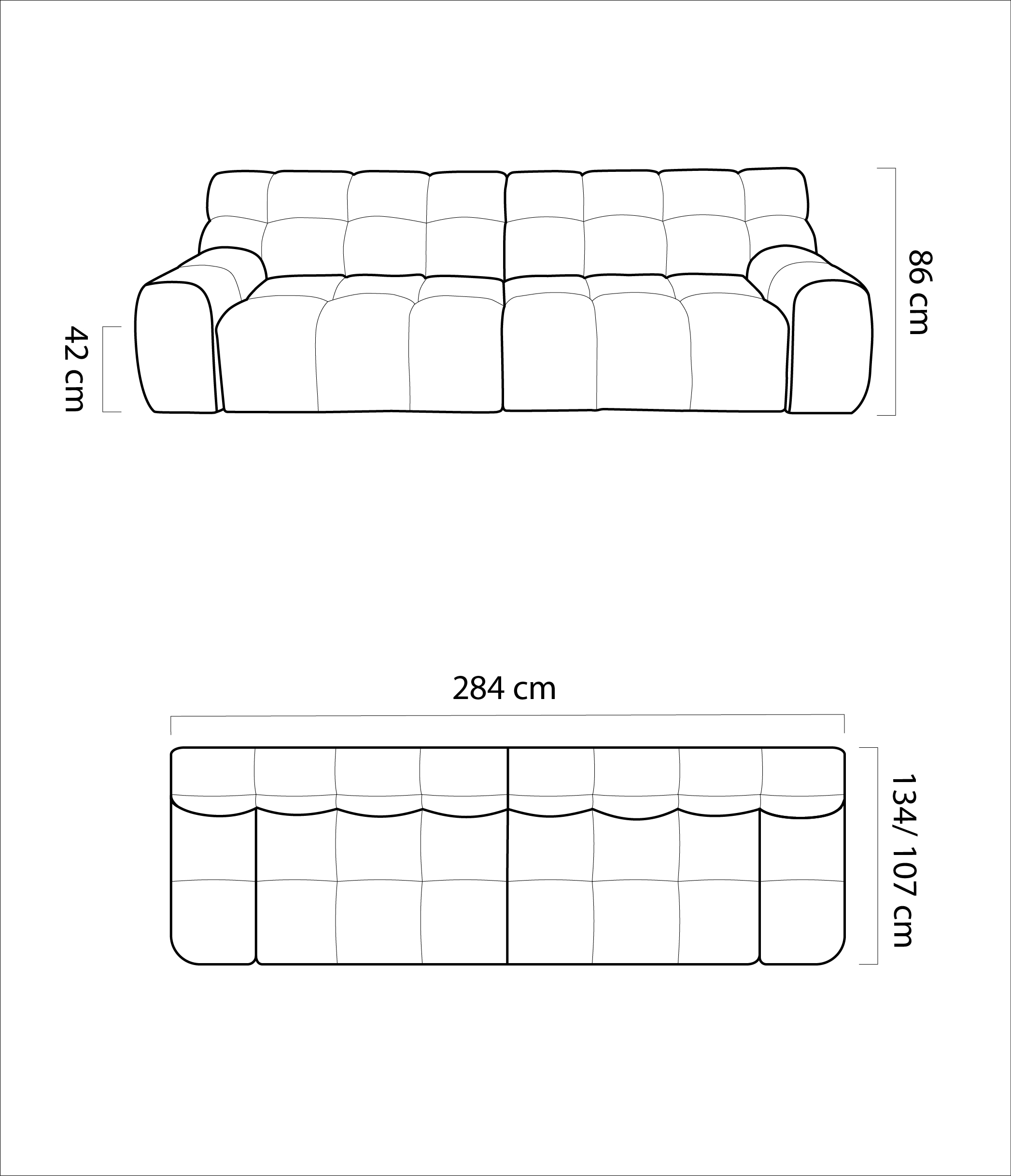 Les dimensions généreuses de ce canapé, avec une longueur de 287 cm et une profondeur de 107 cm, en font un choix idéal pour les espaces spacieux.