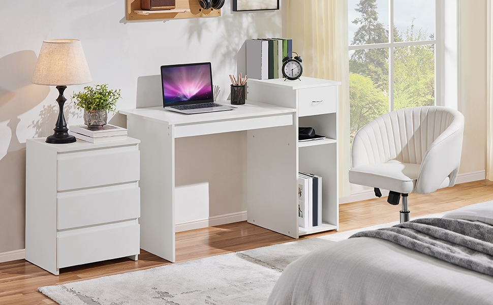 1. Stockage volumineux: Un atout pour optimiser votre espace intérieur. Cette table d'ordinateur vous offre un large plateau pour placer l'écran, ainsi qu'une plateforme surélevée. Le tiroir stocke de petits objets. Le support dessous est dédié au boîtier PC