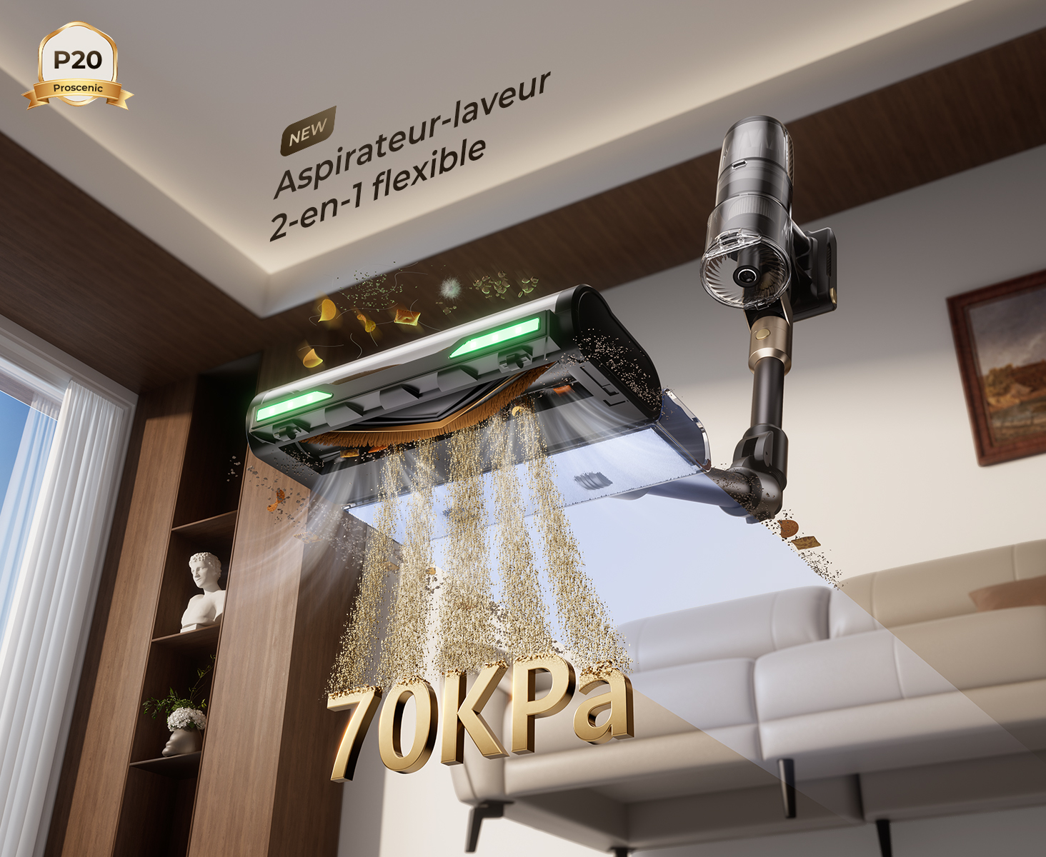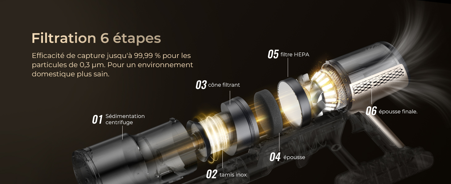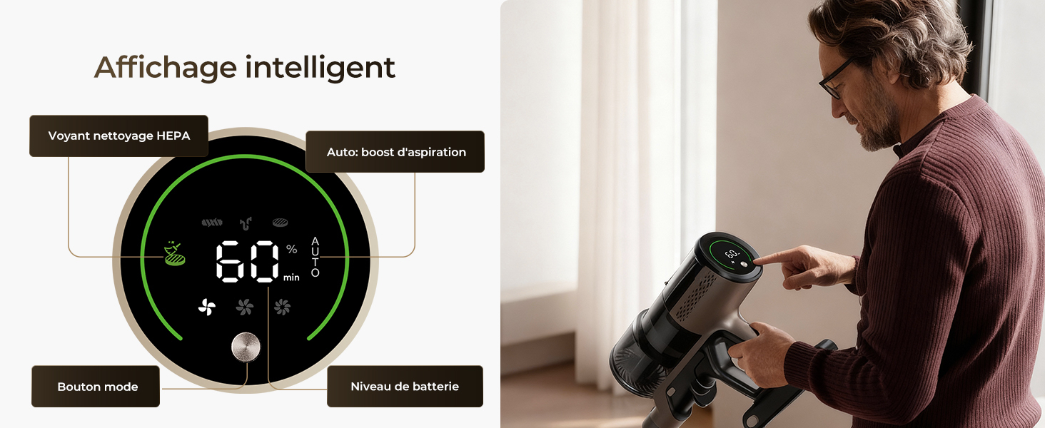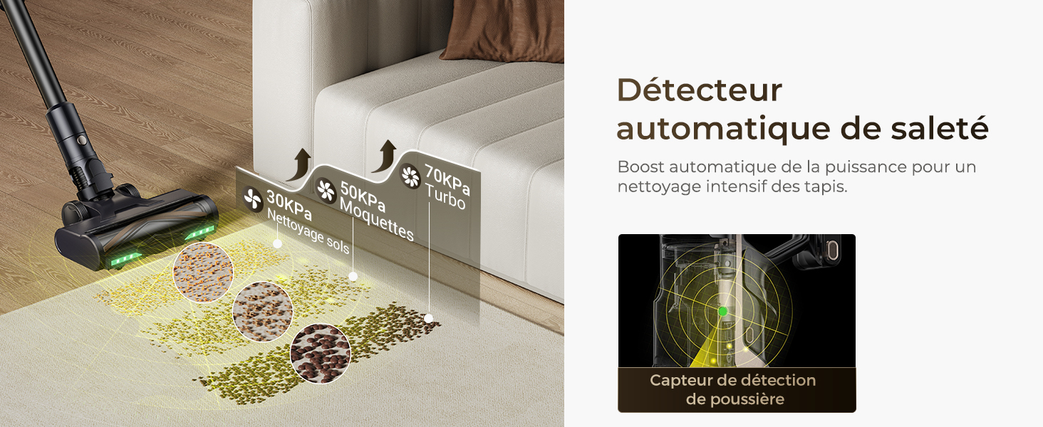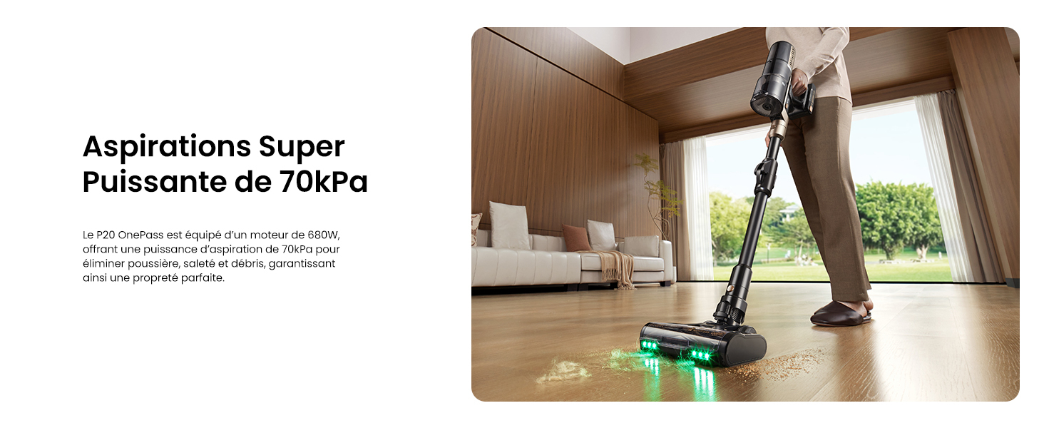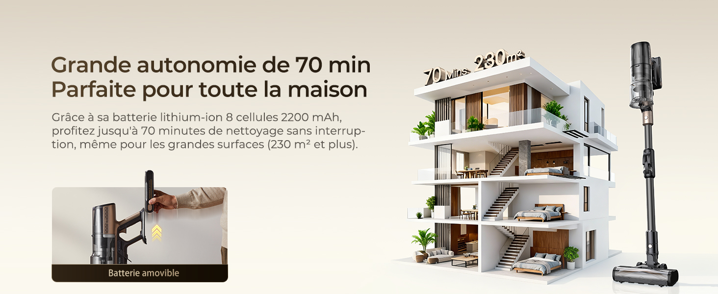 Aspiration super puissante de 70kpa; autonomie ultra-longue de 70 minutes