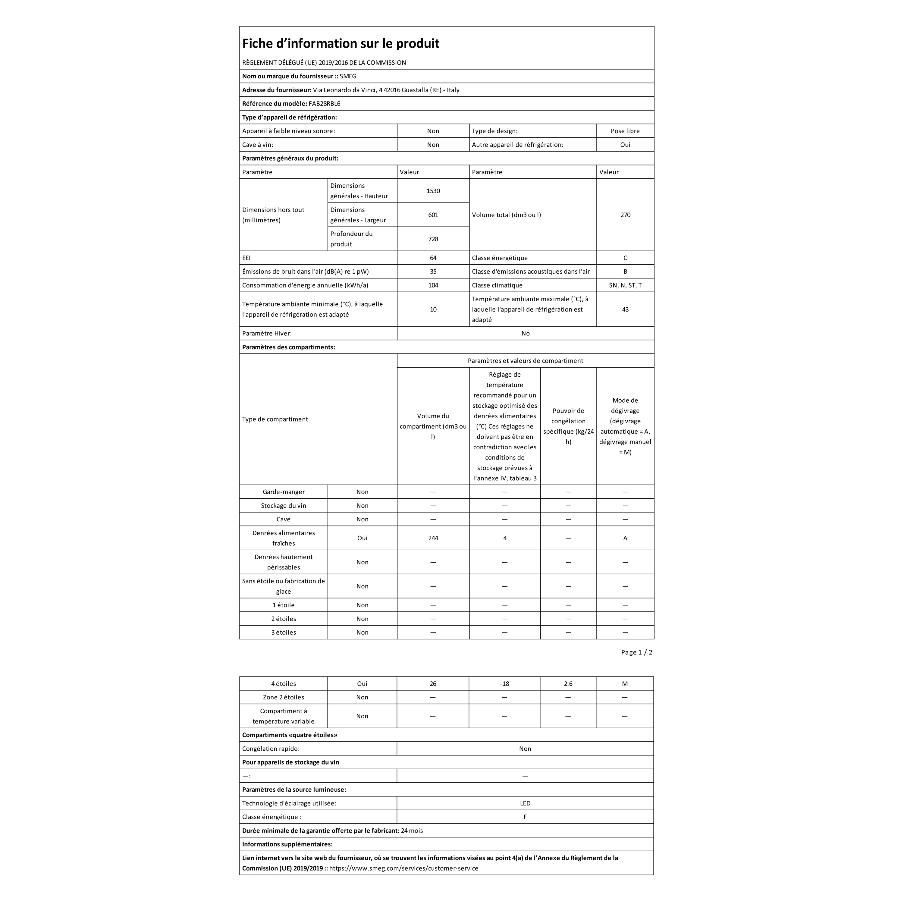 Avec ses dimensions de largeur 60,1 cm, hauteur 150 cm et profondeur 72,8 cm, il s'intègre parfaitement dans votre cuisine tout en offrant une capacité généreuse de 270 litres.